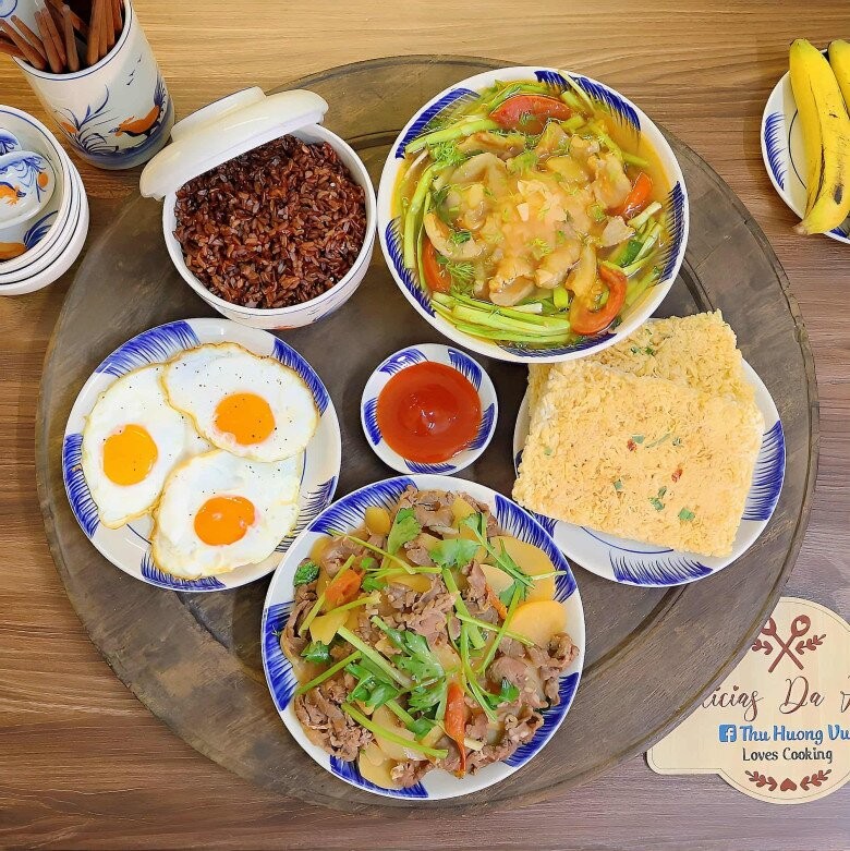 Tham khảo mâm cơm nhà chị Vũ Thu Hương để có thêm ý tưởng cho bữa cơm nhà mình. Mâm cơm gồm các món: