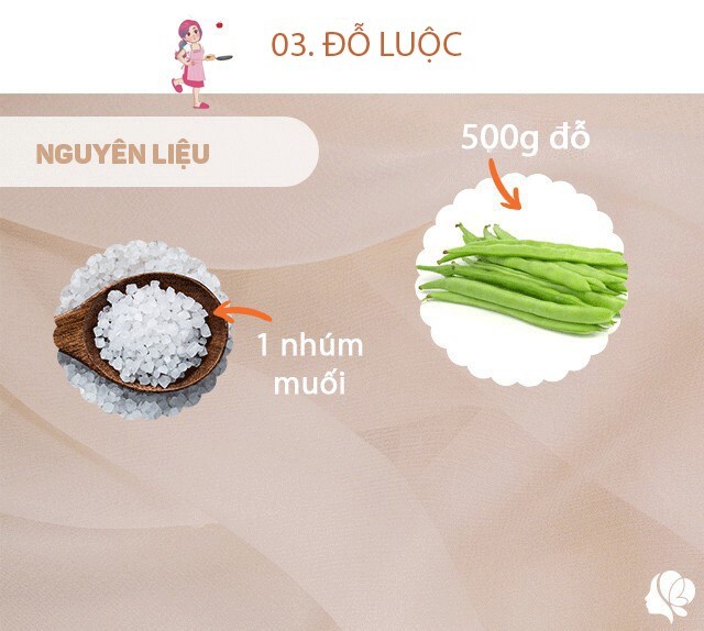 Đỗ tước bỏ xơ già, rửa sạch, bẻ đôi. Đun sôi nồi nước, thêm muối vào, cho đỗ vào luộc chín, vớt đỗ ra đĩa. Muối giúp đỗ xanh hơn.
