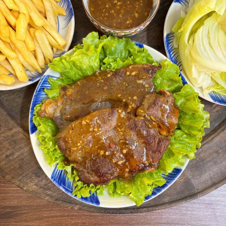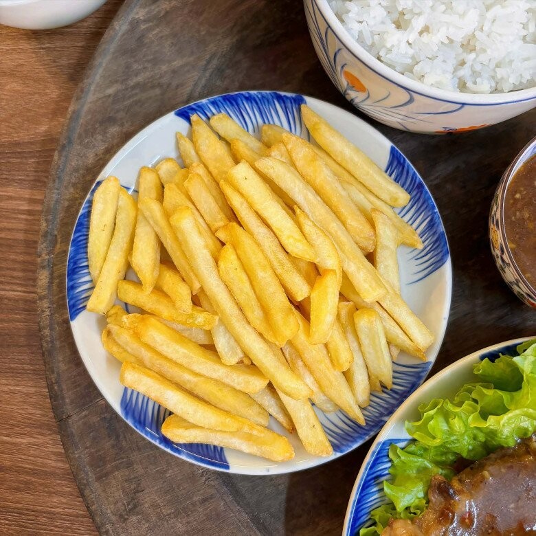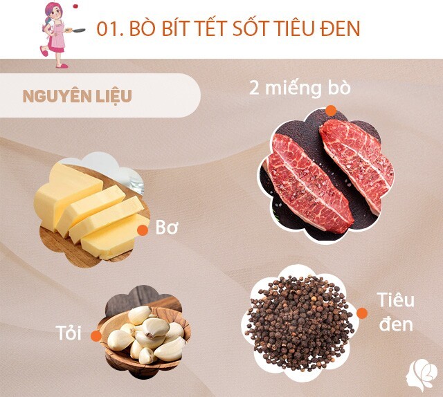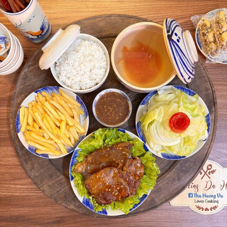 Mâm cơm hôm nay mang sắc thái đổi gió lạ mà quen, khi món bò bít tết sốt tiêu đen đậm đà kiểu Âu được đặt cạnh những món ăn rất đỗi đời thường như khoai tây chiên, bắp cải luộc và bát canh bắp cải dầm cà chua thanh nhẹ. Không cầu kỳ, không nặng vị, bữa ăn cân bằng giữa chất đạm, rau xanh và món kèm, vừa đủ để bữa cơm gia đình thêm mới mẻ mà vẫn giữ được cảm giác ấm áp, gần gũi của mâm cơm nhà.