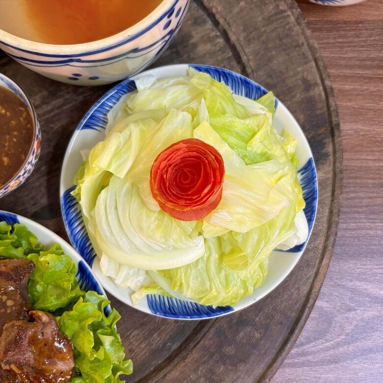 Nước canh bắp cải luộc dầm cà chua: 5.000đ