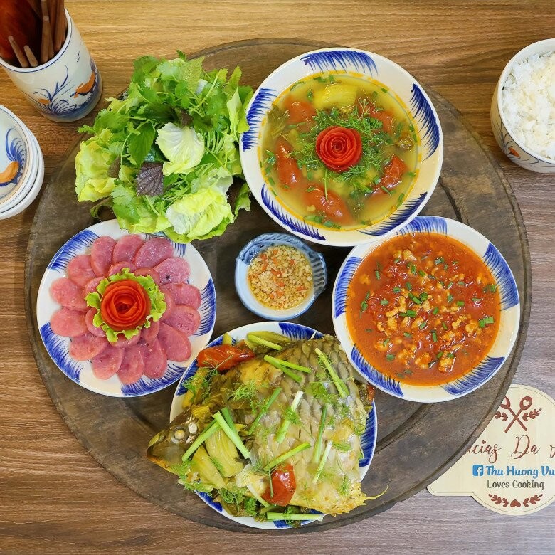 Tham khảo mâm cơm nhà chị Vũ Thu Hương để có thêm ý tưởng cho bữa cơm nhà mình.