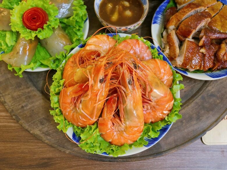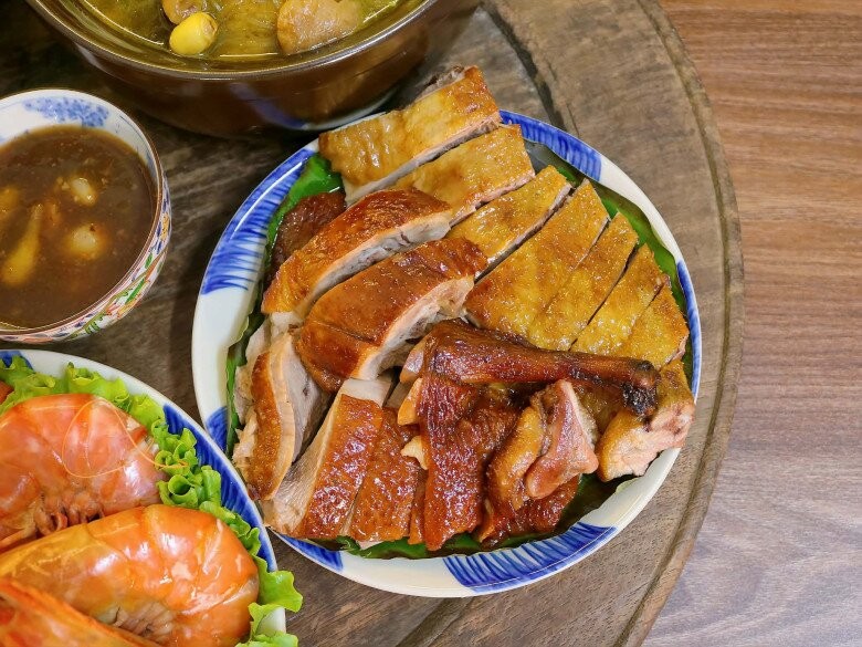 Mâm cơm hôm nay toàn những món "hao cơm" và ấm áp. Có bát chim câu nhồi thịt cốm sen hầm nấm nóng hổi, bổ dưỡng cho cả nhà, thêm đĩa ngan quay ngũ vị thơm nức mũi với lớp da đậm đà. Điểm thêm vị ngọt thanh của tôm hấp nước dừa và đĩa bánh bột lọc tôm thịt dai giòn, ăn kèm ít rau thơm xanh mướt là đúng bài. Đơn giản vậy thôi mà cả nhà quây quần bên nhau thì chẳng gì bằng.