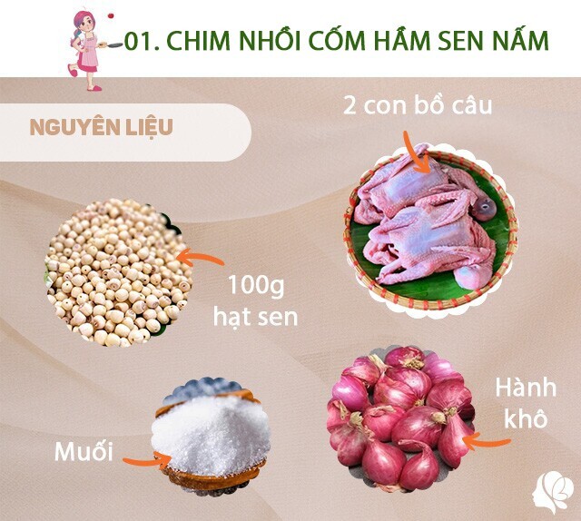 - Chim nhồi thịt cốm sen hầm nấm: 200.000đ