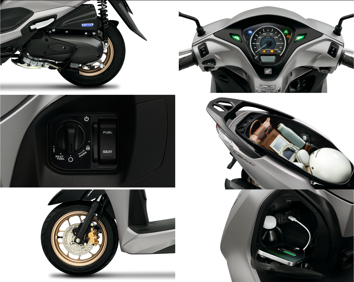 Không chỉ ghi điểm ở thiết kế thời thượng, LEAD ABS 2026 còn khiến người dùng hài lòng bởi hàng loạt tiện ích thông minh được chăm chút trong từng chi tiết. Ở phiên bản Đặc biệt, hệ thống phanh ABS được trang bị trên bánh trước giúp xe vận hành an toàn hơn, hạn chế trượt bánh khi phanh gấp. Hộc đựng đồ phía trước cũng được mở rộng đáng kể, được trang bị kèm cổng sạc USB loại C tiện lợi. Điểm cộng lớn khác đến từ cốp xe “siêu rộng” trên 37 lít trên phiên bản Đặc biệt và Cao cấp – không chỉ chứa được hai mũ bảo hiểm cả đầu mà còn có đèn soi sáng. Tấm chia ngăn thông minh được trang bị trên cả 3 phiên bản, giúp việc sắp xếp đồ đạc trở nên gọn gàng, tiện lợi hơn bao giờ hết.