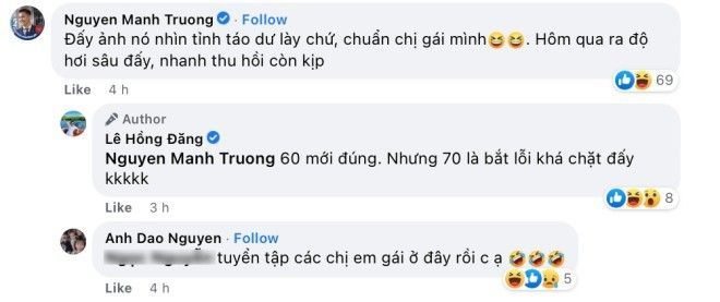 Mạnh Trường nhận xét đàn anh khá tỉnh táo, trong khi bà xã Hồng Đăng cũng thoải mái tương tác trong bài viết.