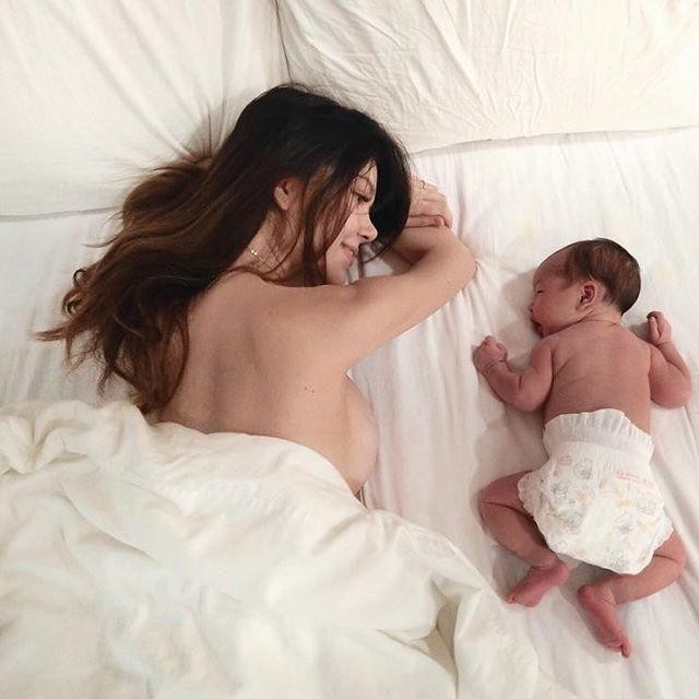 Cô chụp ảnh gợi cảm cùng con sơ sinh.