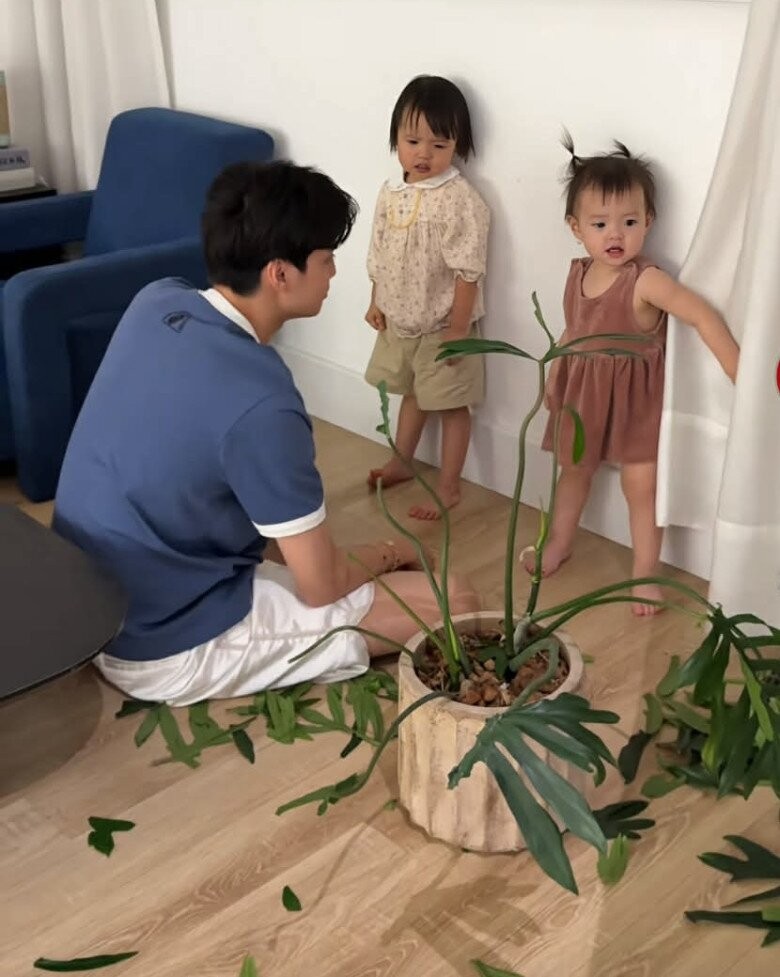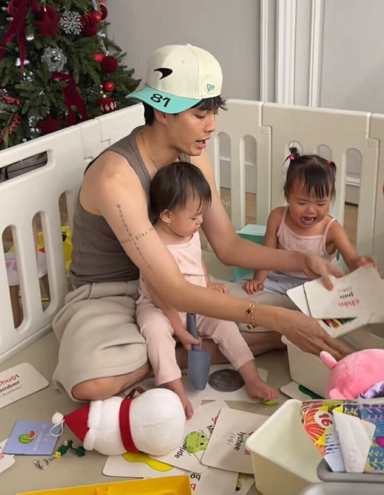 Cặp bố mẹ bỉm Lucie Nguyễn và Tuấn Dương vừa làm kinh tế vừa tự tay chăm sóc các con dưới sự hỗ trợ của ông bà và người giúp việc.