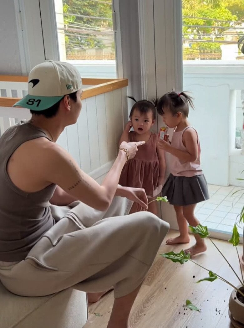 Nhìn hai con gái, Lucie vừa buồn cười nhưng cũng vừa bực vì đồ trang điểm của mình bị hỏng hết còn bản thân bố bỉm Tuấn Dương nhận xét "Hai con này là hai con khỉ chứ con gái gì, không có đứa con gái nào nghịch như thế này".