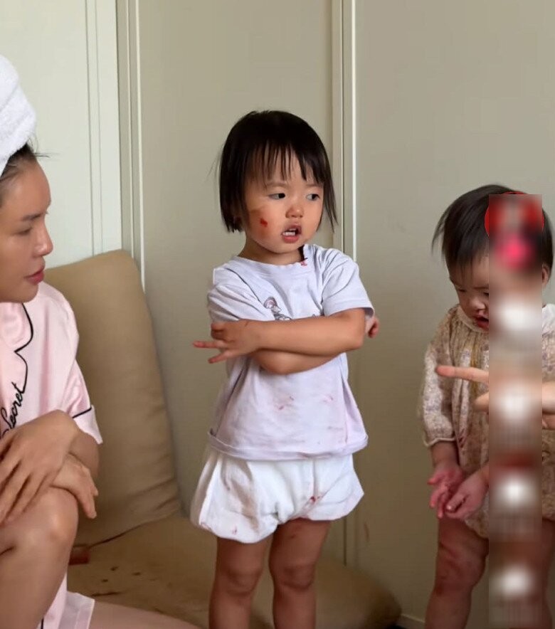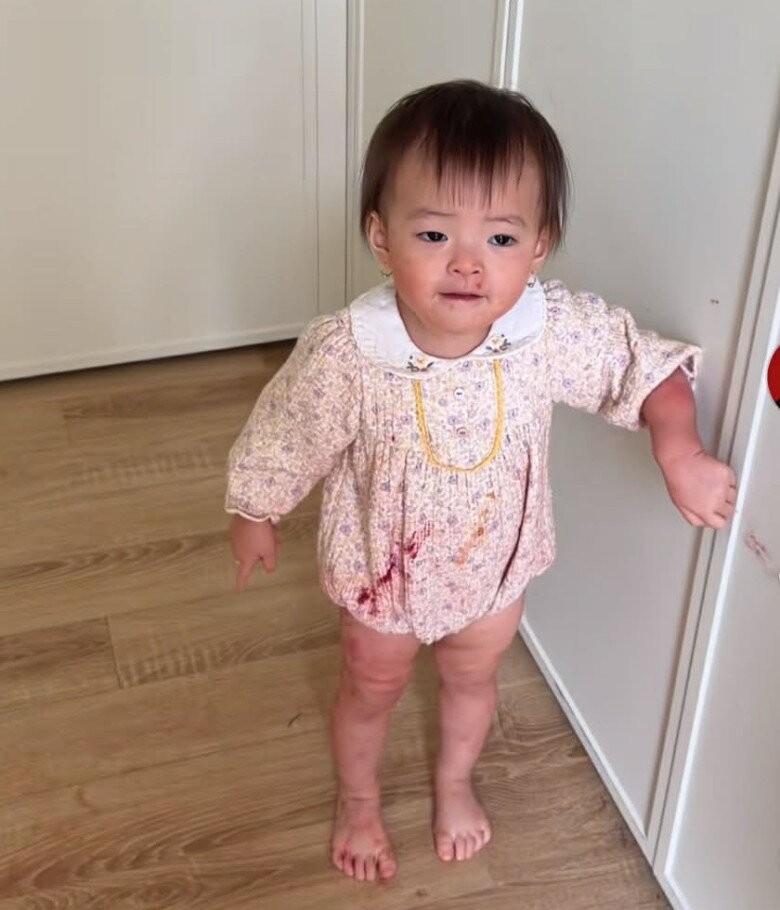 Theo đó, mở đầu đoạn video, vợ chồng Lucie Nguyễn có lẽ đã vô cùng hốt hoảng khi thấy 2 con gái Nami và Suli toàn thân, từ mặt mũi đến chân tay, quần áo đều phủ kín một màu đỏ choe choét. Song khi biết được nguyên do thì lại không thể không bực.