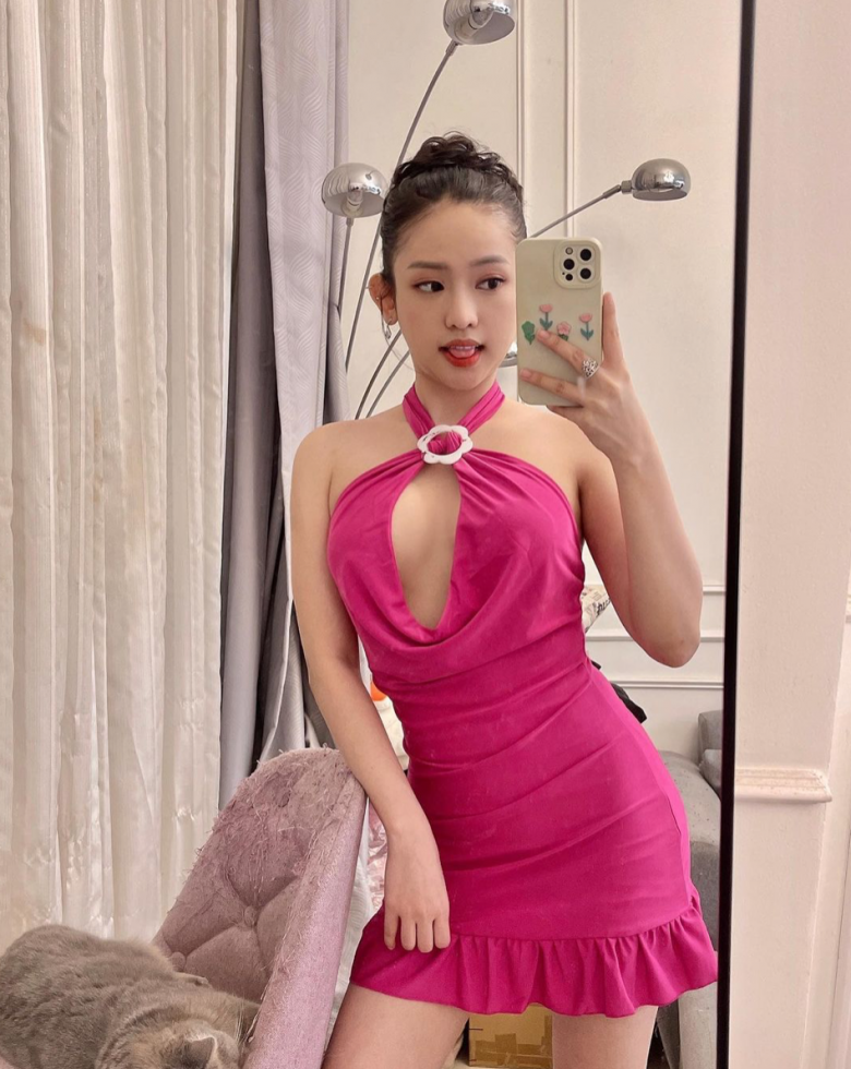 Với cô nàng có niềm đam mê khoe dáng như Thuý Vi thì váy đầm dáng yếm có phom ôm sát, vừa xẻ trước khoét sau chính là sự lựa chọn phù hợp cho những buổi hẹn hè.