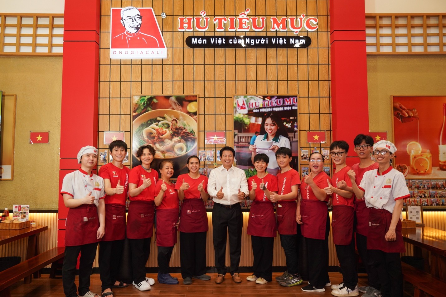 Anh Nguyễn Văn Minh và đội ngũ nhân viên “Hủ tiếu mực Ông già Cali”.