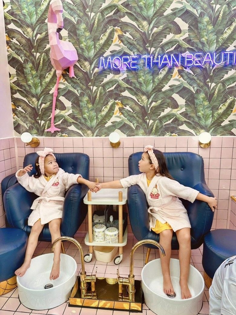 Tận hưởng ngày nghỉ lễ cùng nhau, 2 cô bé được 2 bà mẹ đưa đi chơi, đi làm đẹp.