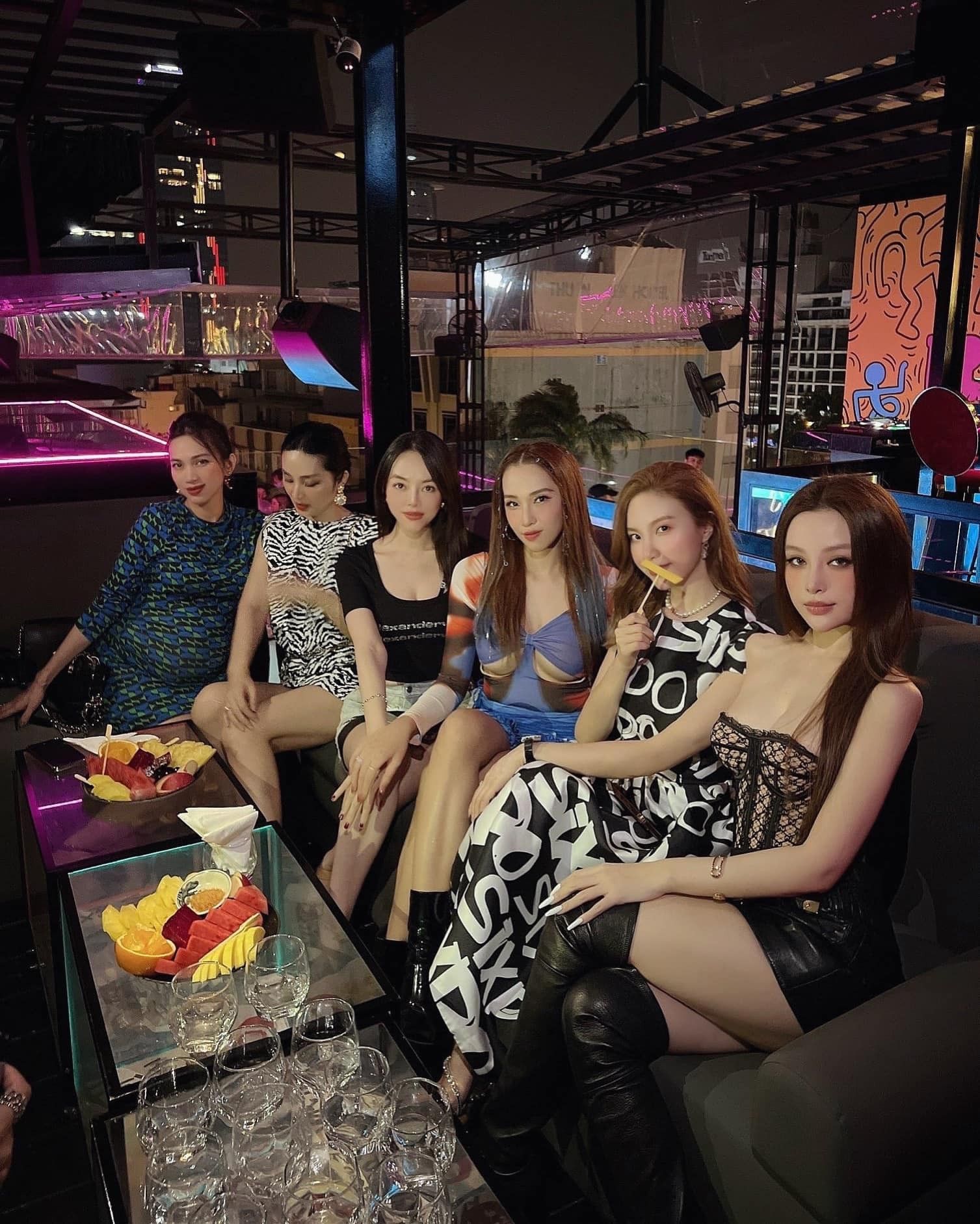 Huyền Baby lại tiếp tục lấn át hội bạn thân trong một buổi tiệc khác. Cô tiếp tục khoe vòng 1 đầy đặn của mình với chiếc áo ống quyến rũ, dựng phom corset ôm eo đôn ngực.