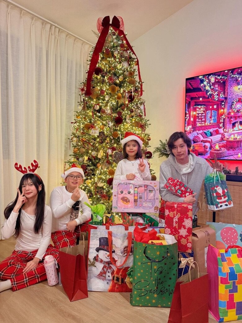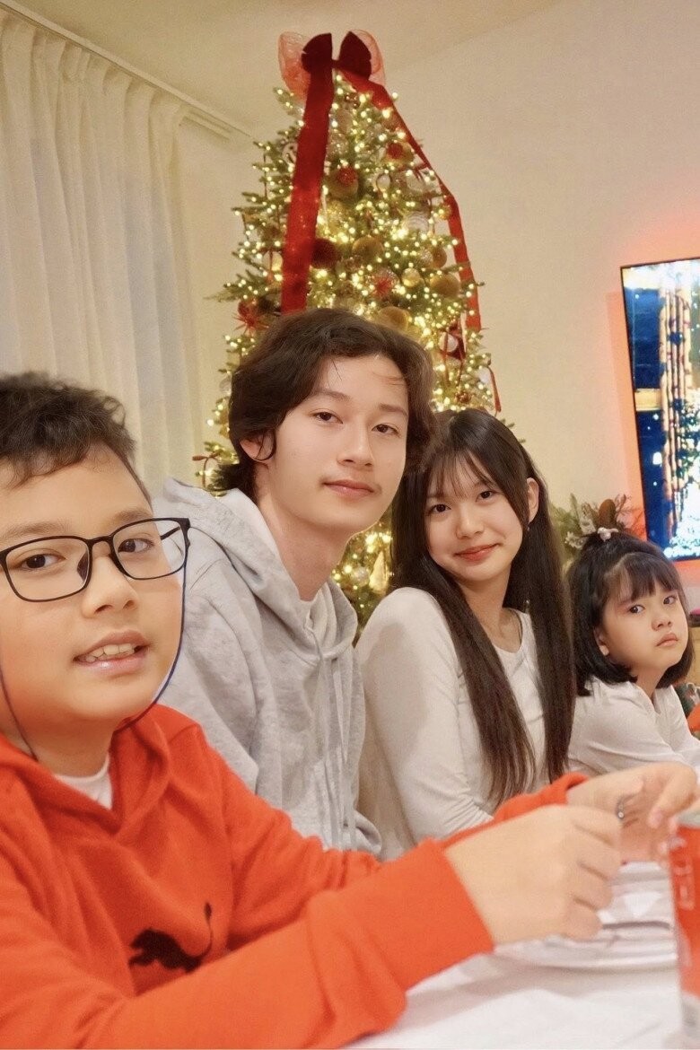 Mới đây, Hoa hậu Jennifer Phạm chia sẻ loạt ảnh đón Giáng sinh cùng gia đình, bên cạnh ông xã doanh nhân Đức Hải và 4 con. Nàng hậu vẫn khiến nhiều người xuýt xoa với vẻ ngoài rạng rỡ, trẻ trung dù làm mẹ 1 tay nuôi “bầy con”. Cậu con trai lớn Bảo Nam du học Mỹ trở về, tề tựu bên bố mẹ cùng các em dịp Lễ cuối năm. Trong bài đăng của Jennifer Phạm, nhan sắc cậu quý tử đầu lòng và cô con gái thứ 2 Thuỳ An gây chú ý.