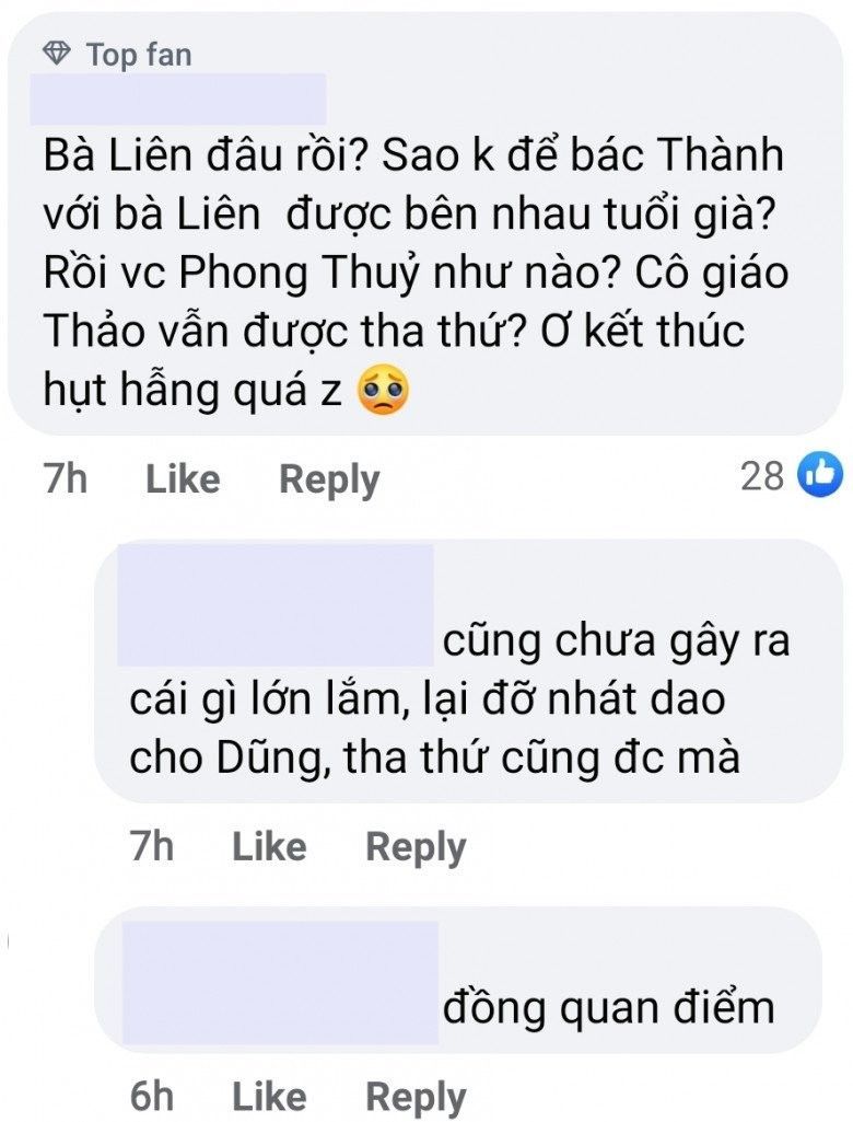 Hay như bà hàng xóm tốt bụng Liên (NSND Ngọc Thư), nhân vật này được khán giả "đẩy thuyền" rất nhiệt tình với ông Thành và mong cả hai sẽ được nương tựa vào nhau lúc tuổi già. Và đặc biệt là Thảo, liệu bố Dũng có tha thứ và tiếp tục làm đám cưới với cô ta hay không?