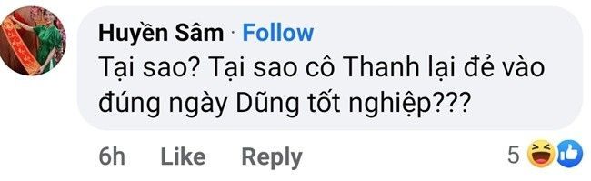 Nữ diễn viên Huyền Sâm thủ vai cô giáo Thanh hài hước đùa rằng vì nhân vật này đi đẻ nên mới vắng mặt ở tập cuối.