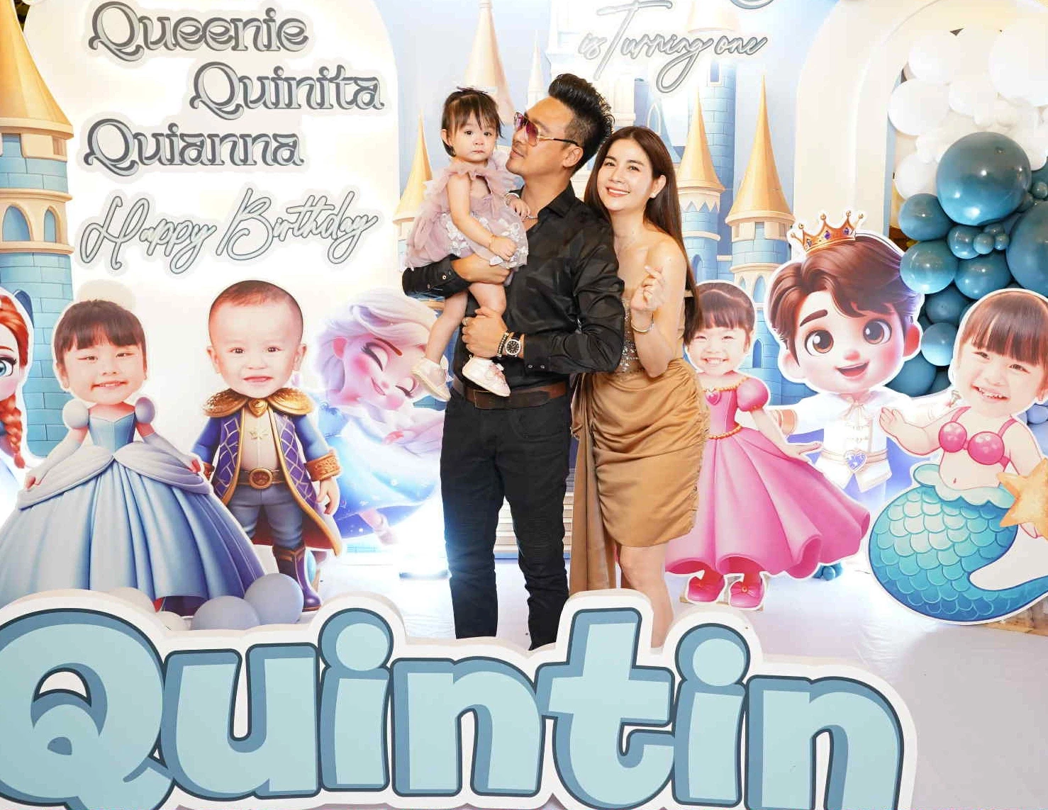 Ngày 12/10, Vân Trang đã tổ chức buổi tiệc sinh nhật 1 tuổi hoành tráng cho quý tử Quintin Lê. Vợ chồng nữ diễn viên và 4 con đã hóa trang thành những nhân vật hoàng gia trong thế giới Disney. Đặc biệt, “nhân vật chính” còn được đội vương miện, mặc trang phục của một tiểu hoàng tử. Nhóc tì được khen điển trai, kháu khỉnh và là bản sao của bố.