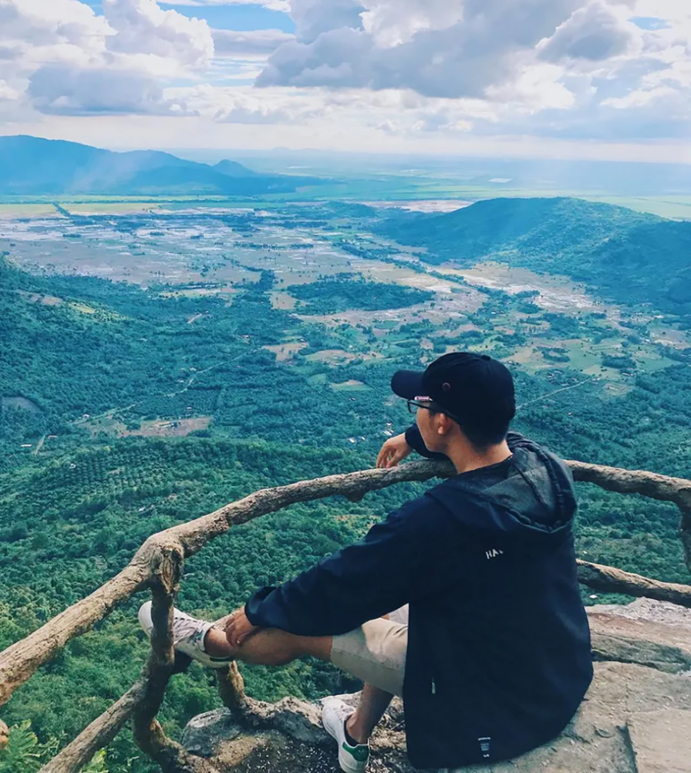 Đứng trên đỉnh núi, du khách có thể ngắm trọn bức tranh đồng bằng Tây Nam Bộ trải dài bất tận, xen lẫn là những mái nhà nhỏ bé và ruộng lúa trải dài ở phía xa. Ở nơi đây, du khách khi đến vào sáng sớm có thể trải nghiệm cảm giác “săn mây” khi có thể ngắm những tảng mây trôi bồng bềnh ở khoảng cách gần nhất.