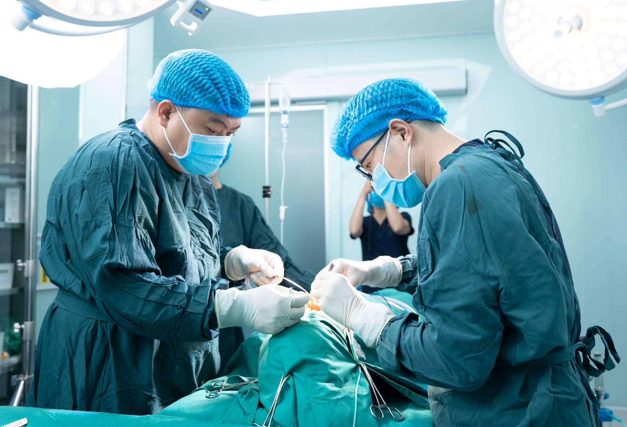 Bác sĩ Vượng tiến hành nâng mũi bảo tồn, gia cố cấu trúc bằng sụn tự thân (tai hoặc sườn tùy trường hợp), hạn chế xâm lấn vách ngăn và điều chỉnh sống – đầu – trụ mũi để dáng mũi hài hòa, tự nhiên.