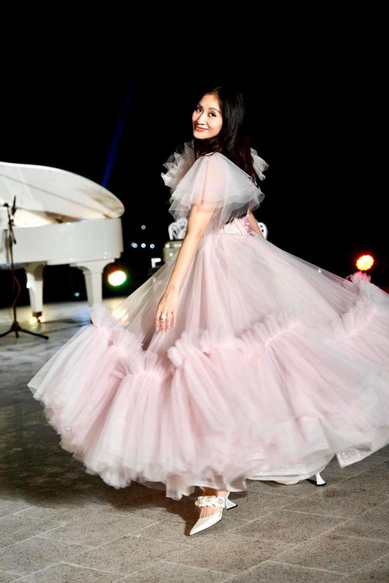 Cô thường lựa chọn váy đầm bồng bềnh để bản thân trẻ trung hơn. Song các thiết kế này mà thiếu đi đôi giày cao ít nhất khoảng 7cm thì lại biến người mặc trở thành cây "nấm lùn".