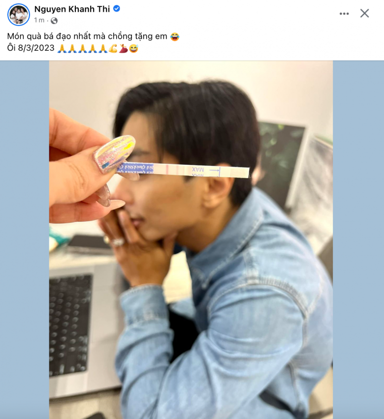 Mới đây, Khánh Thi gây xôn xao khi chính thức thông báo mang bầu lần 3 với lời nhắn: "Món quà bá đạo nhất mà chồng tặng em. Ôi 8/3/2023", kèm theo đó là ảnh chụp que thử thai 2 vạch xác nhận sự xuất hiện của thành viên mới trong gia đình. Như vậy, sau hơn 14 năm bên nhau và hơn 3 tháng kể từ khi tổ chức đám cưới "cổ tích", vợ chồng Khánh Thi - Phan Hiển sẽ chuẩn bị "lên chức" lần 3, Kubi - Anna sắp có em.