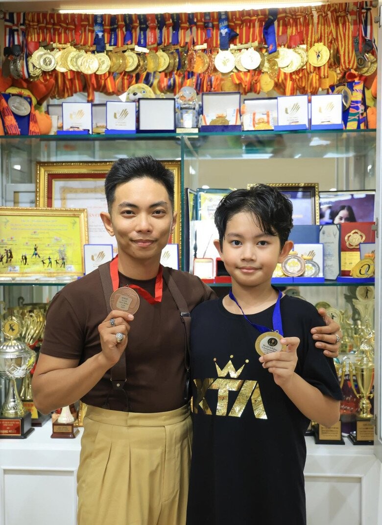 Đặc biệt, con đầu lòng của Khánh Thi nhận được nhiều sự quan tâm và yêu mến khi bộc lộ tài năng dancesport từ sớm. Khi mới là cậu bé 10 tuổi, Kubi đã 2 lần giành chức vô địch thế giới hạng Thiếu nhi 1 ở Syllabus World Championship vào năm 2023 và 2024. Ngoài ra, cậu bé nhiều lần giành cúp thưởng, huy chương ở các cuộc thi lớn nhỏ trong và ngoài nước.
