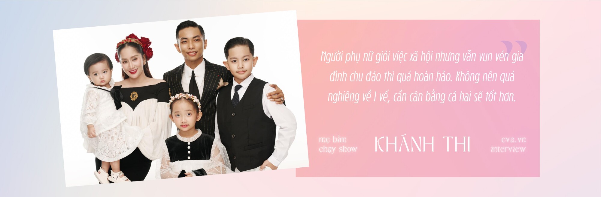 Tôi không áp đặt ai hết. Đối với tôi, một người phụ nữ giỏi việc xã hội nhưng cũng vun vén gia đình chu đáo thì quá hoàn hảo. Nhưng không nên quá nghiêng về 1 vế, cần cân bằng cả 2 sẽ tốt hơn.