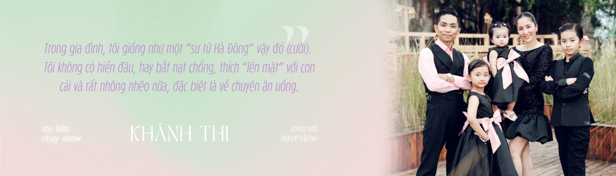 Khánh Thi sinh năm 1982, là kiện tướng dancesport từng tham gia nhiều giải đấu lớn ở trong nước và quốc tế. Hiện tại, cô có cuộc hôn nhân hạnh phúc với ông xã kém 11 tuổi - Phan Hiển và 3 con “đủ nếp đủ tẻ” gồm Kubi, Anna và Lisa.