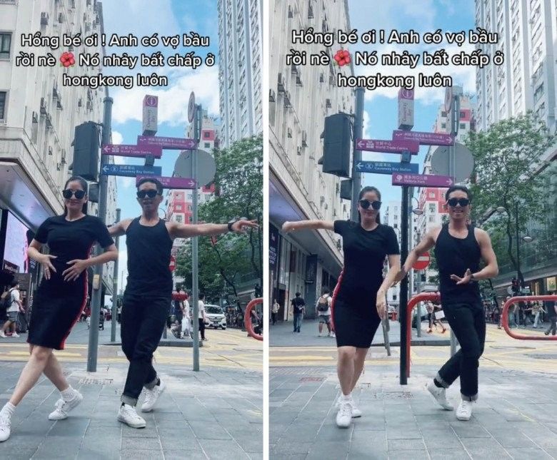 Mới đây, Khánh Thi - Phan Hiển đăng tải đoạn video 2 vợ chồng nhảy nhót năng động trên đường phố Hong Kong. Bắt trend "Hổng bé ơi, anh có vợ rồi", cặp đôi kết hợp khiêu vũ cực kỳ ăn ý. Đáng chú ý, Khánh Thi đang bầu khá lớn nhưng vẫn rất hăng hái, thân hình dẻo dai thực hiện từng bước nhảy cực chuẩn, phong độ không hề giảm sút so với lúc chưa bầu. "Nữ kiện tướng dancesport" diện váy ôm sát nên có thể thấy rõ phần bụng đã nhô cao. Tuy nhiên, nhìn tổng thể, vóc dáng bà xã Phan Hiển không thay đổi quá nhiều.