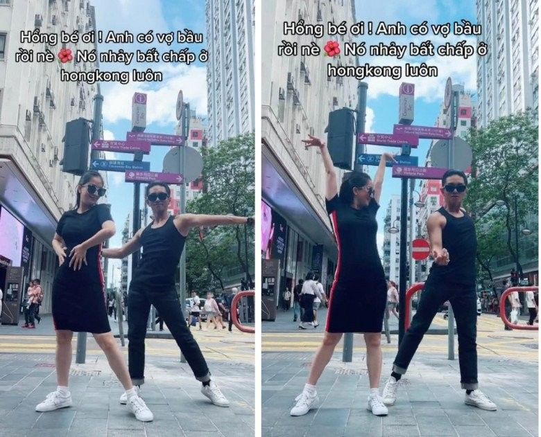 Kèm theo video, Phan Hiển chú thích vui: "Hổng bé ơi! Anh có vợ bầu rồi nè, nó nhảy bất chấp ở Hồng Kông luôn". Anh nói thêm: "Tranh thủ dạo phố rồi mai về với mấy siêu quậy nào". Về phần Khánh Thi, cô cũng chia sẻ khoảnh khắc thú vị của 2 vợ chồng, hé lộ mình đang mang bầu gần 5 tháng: "Anh Hiển đưa chị bầu Khánh Thi dập dìu ở Hồng Kông. Đấy em bầu gần 5 tháng vẫn quậy tung luôn ạ".