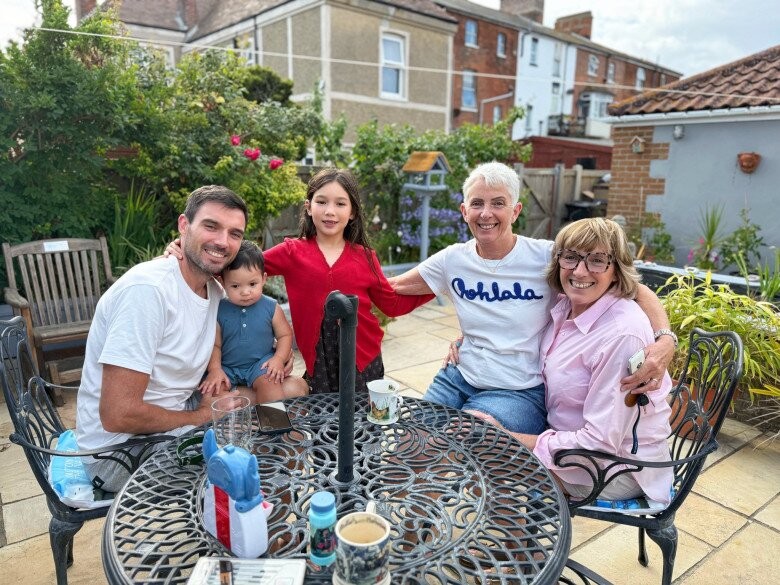 Vợ chồng nữ siêu mẫu đưa các con về Anh thăm gia đình nội.