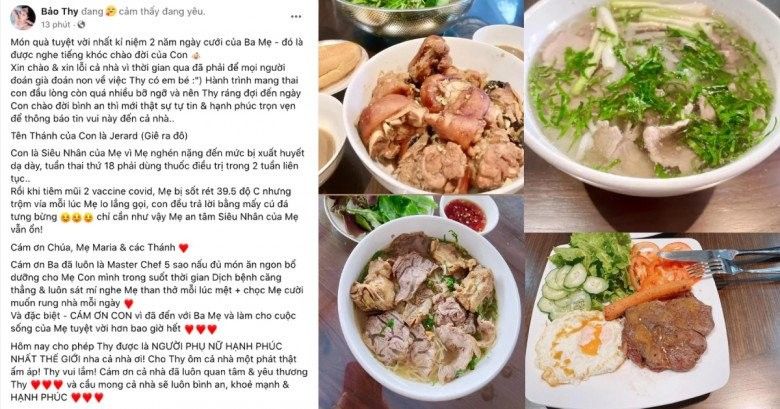 Bảo Thy được chồng "cưng như trứng", nấu cho từng bữa ăn khi cô mang bầu.