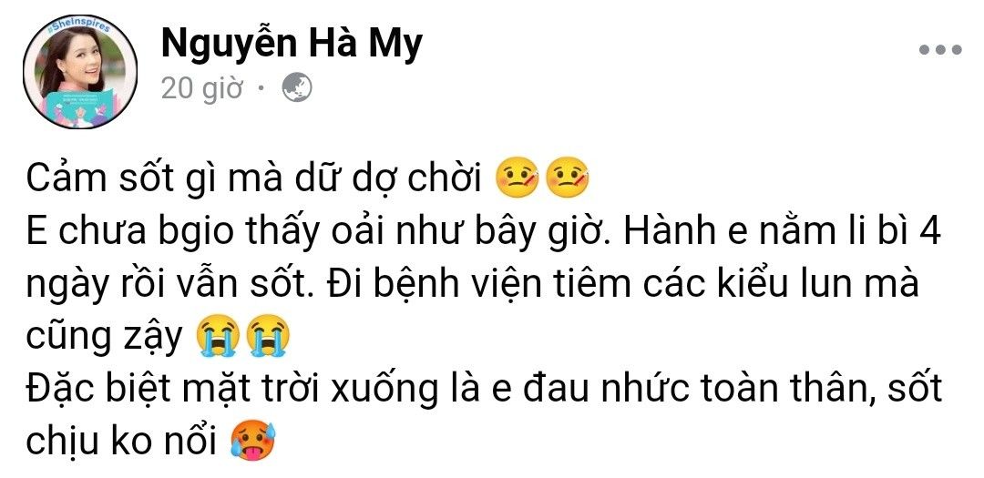 Tuy nhiên khoe tin vui chưa lâu, mới đây Sam lại chia sẻ "vận hạn" ngay đầu năm mới 2023. Cô gặp vấn đề sức khỏe. Người đẹp cho biết: "Cảm sốt gì mà dữ vậy trời. Em chưa bao giờ thấy oải như bây giờ. Hành em nằm li bì 4 ngày rồi vẫn sốt. Đi bệnh viện tiêm các kiểu luôn mà cũng vậy. Đặc biệt mặt trời xuống là em đau nhức toàn thân, sốt chịu không nổi".
