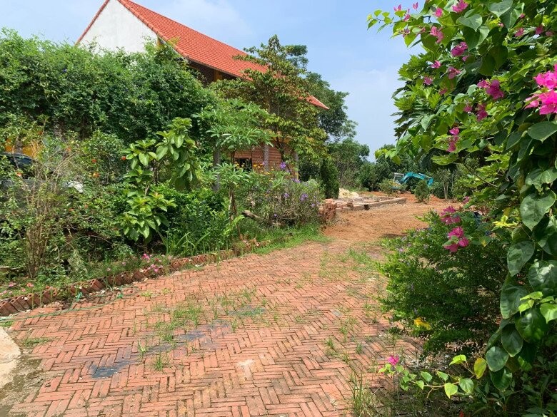Ở giữa, cô dựng chòi để thỉnh thoảng ra nghỉ ngơi, ngắm vườn.