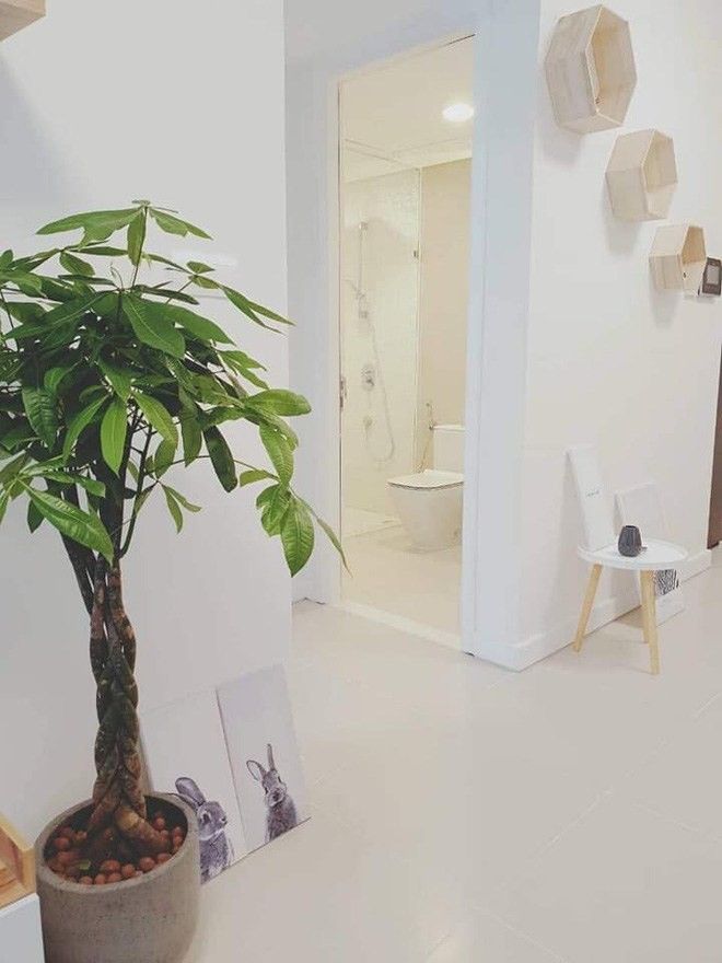 Căn hộ có tone màu trắng chủ đạo, kết hợp với đồ nội thất màu trắng – xám nhã nhặn, tạo cảm giác rộng rãi, thoải mái. Đồ nội thất đơn giản nhưng đầy đủ, tiện nghi. Trong nhà cô còn trang trí thêm cây cảnh để thanh lọc không khí, tô điểm thêm cho không gian sống.