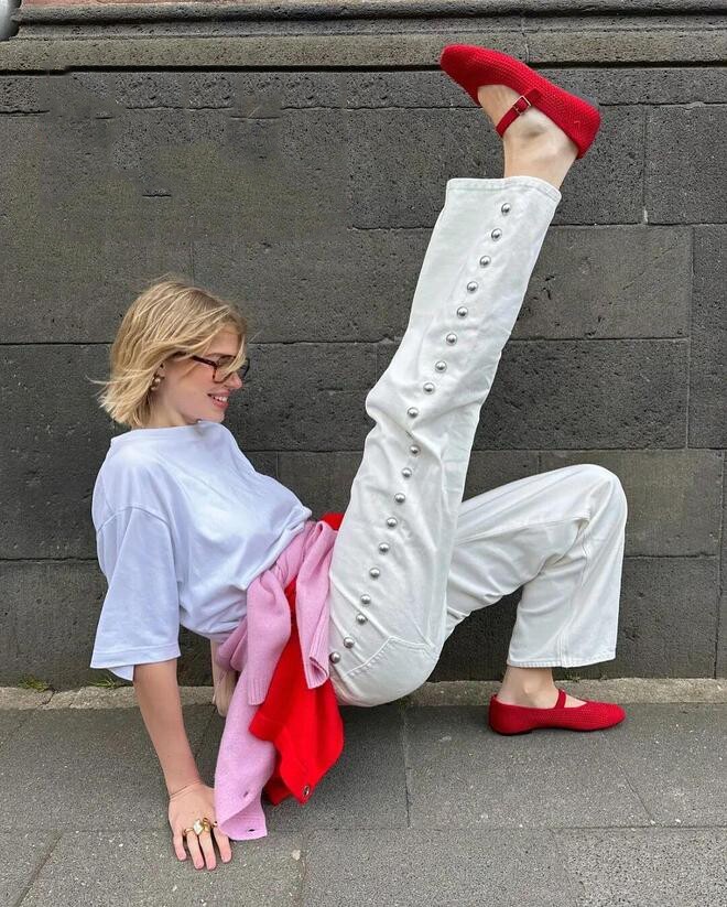 Những đôi Mary Jane màu đỏ thường “âm thầm” quay trở lại và nhanh chóng chiếm sóng, nhờ khả năng tạo điểm nhấn nổi bật mà vẫn giữ được nét tinh tế. Với thiết kế gọn gàng, độ hở vừa phải cùng sắc đỏ bắt mắt, đây là lựa chọn an toàn nhưng đủ sức thu hút ánh nhìn trong mọi set đồ Xuân Hè.