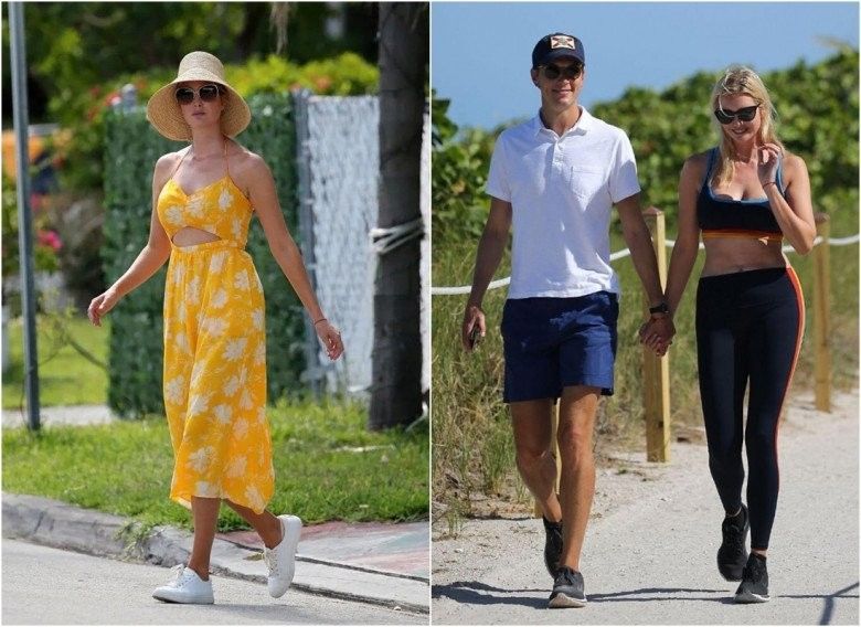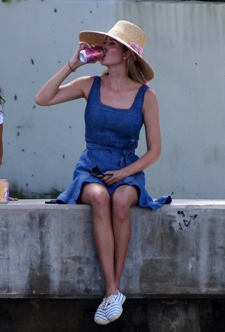 Kết hợp cùng chiếc nón cói rộng vành đơn giản, đôi giày bệt kẻ ô ton-sur-ton trang phục, Ivanka nhận về nhiều lời khen ngợi cho outfit không hề cầu kì hay màu mè nhưng vẫn đạt được hiệu ứng thẩm mỹ đáng kể.