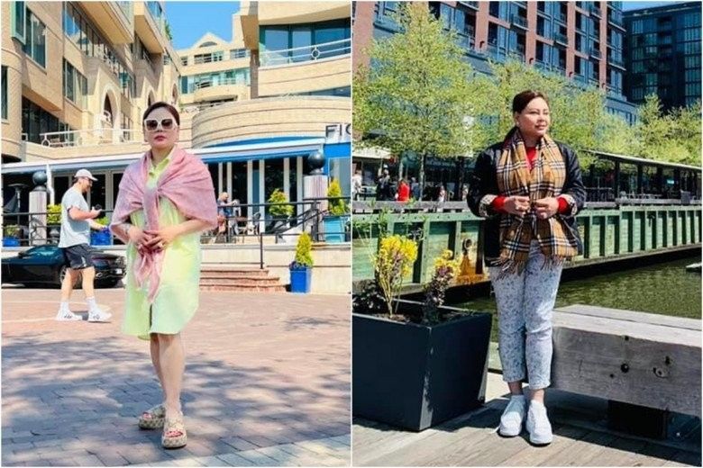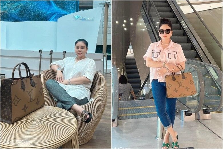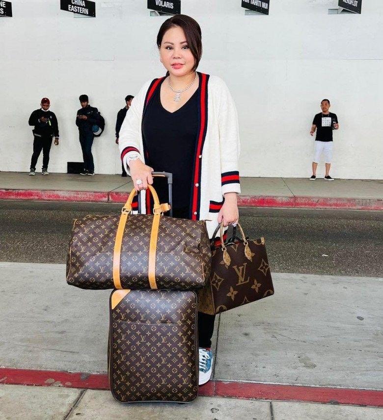 Đi du lịch nước ngoài, "Tú bà" U50 cũng tay xách mang cả bộ túi và vali Louis Vuitton có giá thành lên đến hơn trăm triệu. Nhờ đó mà dù ăn diện đơn giản thì Lê Giang vẫn nổi bật nhất sân bay.