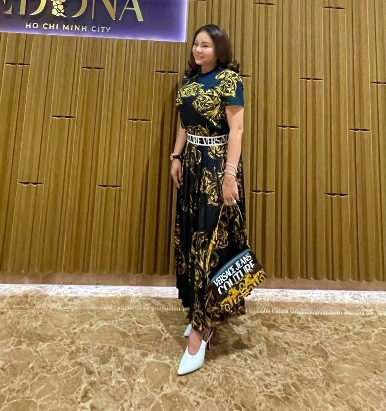 Khoe ảnh "lên đồ" đi chơi, mẹ Lê Lộc thể hiện sự sành điệu, chịu chơi trong phong cách bằng cây đồ Versace kín đáo và sang. Để tô đậm thêm sự đắt giá cho outfit, một chiếc túi cùng thương hiệu chính là mảnh ghép lý tưởng mà Lê Giang lựa chọn.