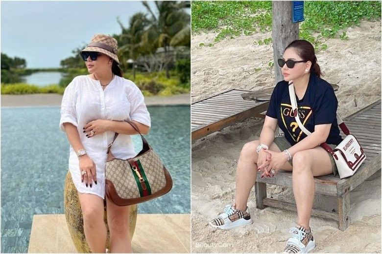 Liên tục trên trang cá nhân, người đẹp làng hài không chỉ đăng tải hình ảnh đi du lịch từ châu Á sang châu Âu mà còn xách túi hiệu mỗi ngày mỗi kiểu. Dường như Lê Giang đã sưu tập rất nhiều túi hiệu với các kích thước, mẫu mã, màu sắc, nhãn hàng... khác nhau. Thậm chí, nhiều người còn trêu rằng nữ nghệ sĩ có thể mở luôn cả store để trưng bày.