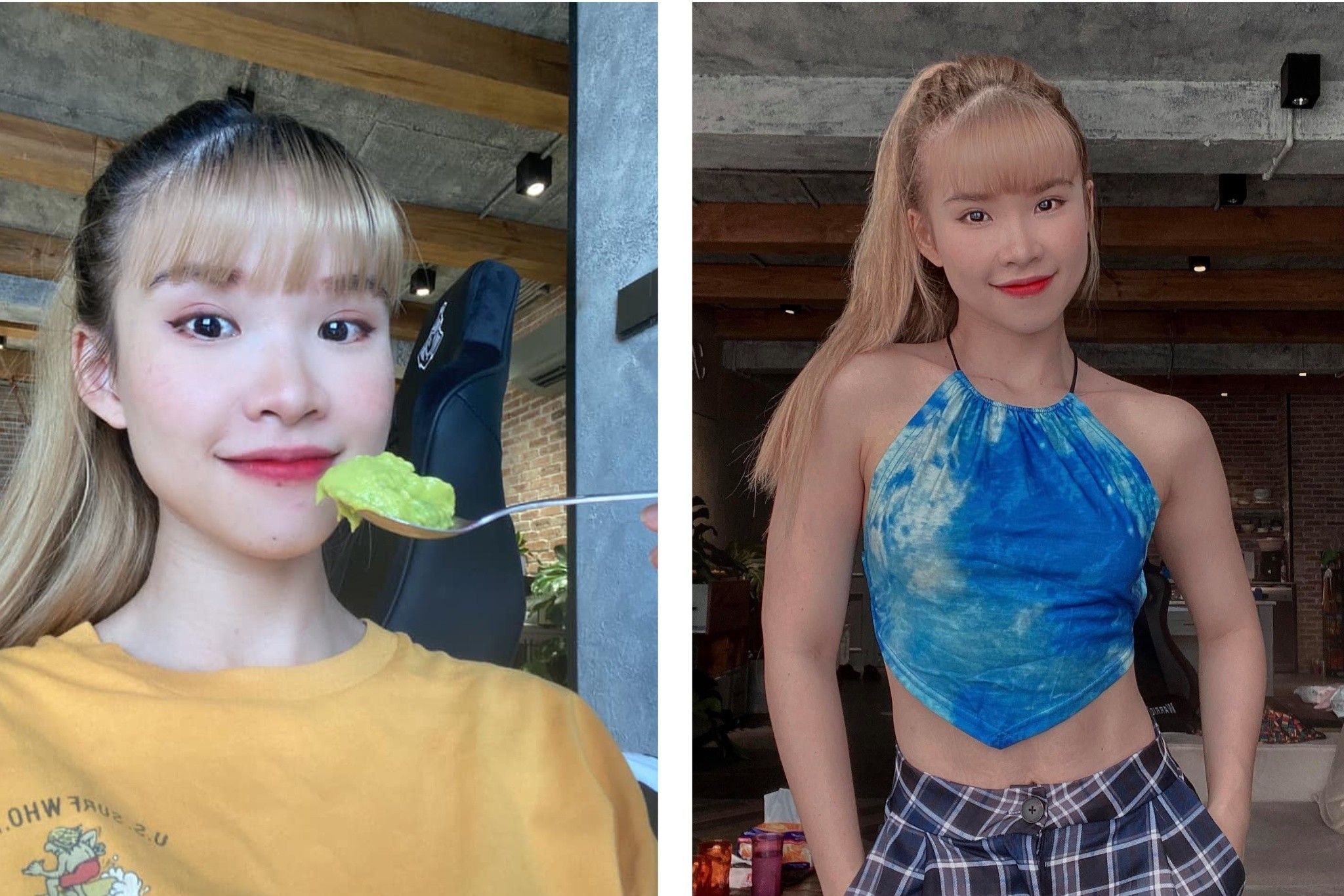 Với gương mặt trong trẻo, vóc dáng nhỏ nhắn cùng làn da trắng mịn, màu tóc "chói lóa" này không làm khó được cô. Trông Khởi My hệt như những cô thiếu nữ trẻ trung.