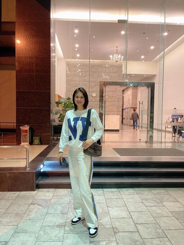 Cô rất thích combo đồ thể thao với form dáng rộng rãi, thoải mái.