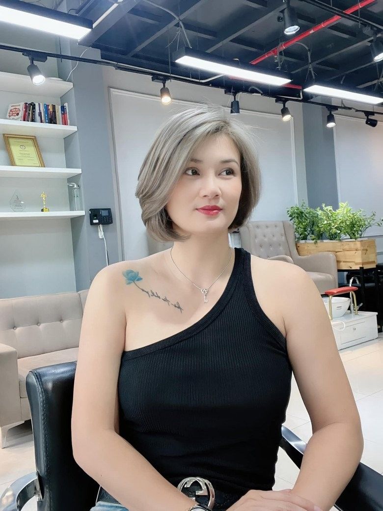 Hiếm hoi Kim Huệ đầu tư make-up và làm tóc chỉn chu. Cô khoe sắc vóc ở tuổi tứ tuần trong concept thời trang "nổi loạn".
