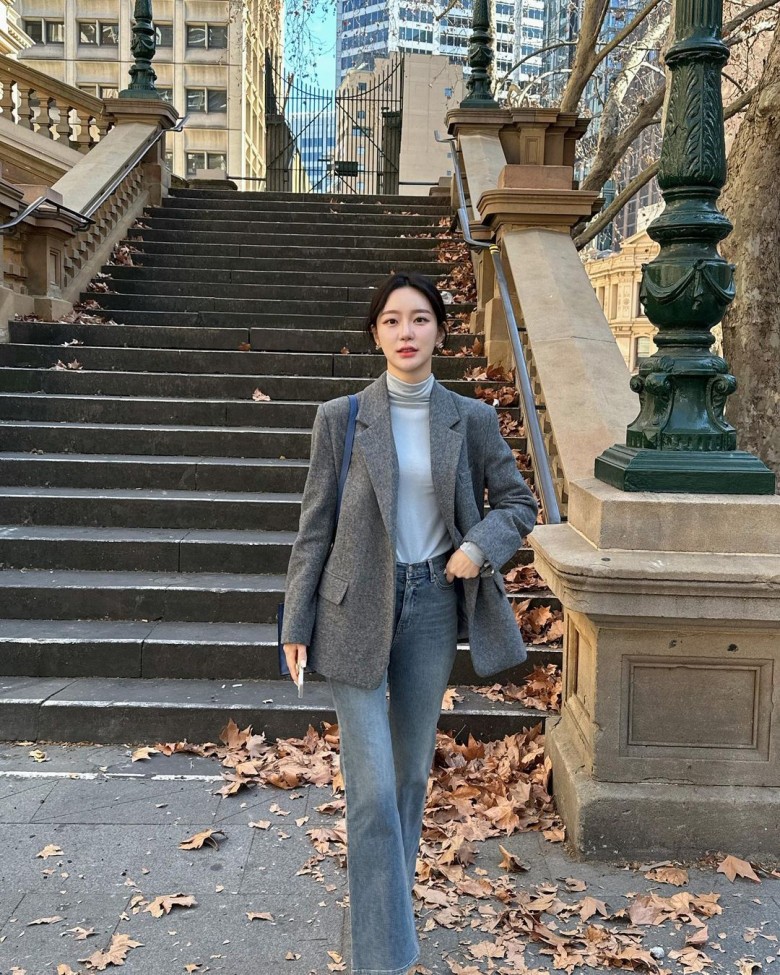 Xanh denim lại mang tinh thần hoài cổ, cổ điển. Khi kết hợp với màu xám, tổng thể trở nên trầm tĩnh và kín đáo hơn nhưng vẫn giữ được nét trẻ trung, năng động. Một bộ vest xám phối cùng quần jeans ống rộng là minh chứng cho phong cách đơn giản mà tinh tế, mang đậm hơi thở hiện đại và không bao giờ lỗi mốt.