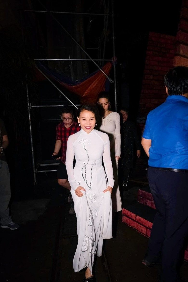 Tà áo dài kín đáo nhưng đồng thời tôn được hết những đường cong nuột nà của bà Ngọc Hương.
