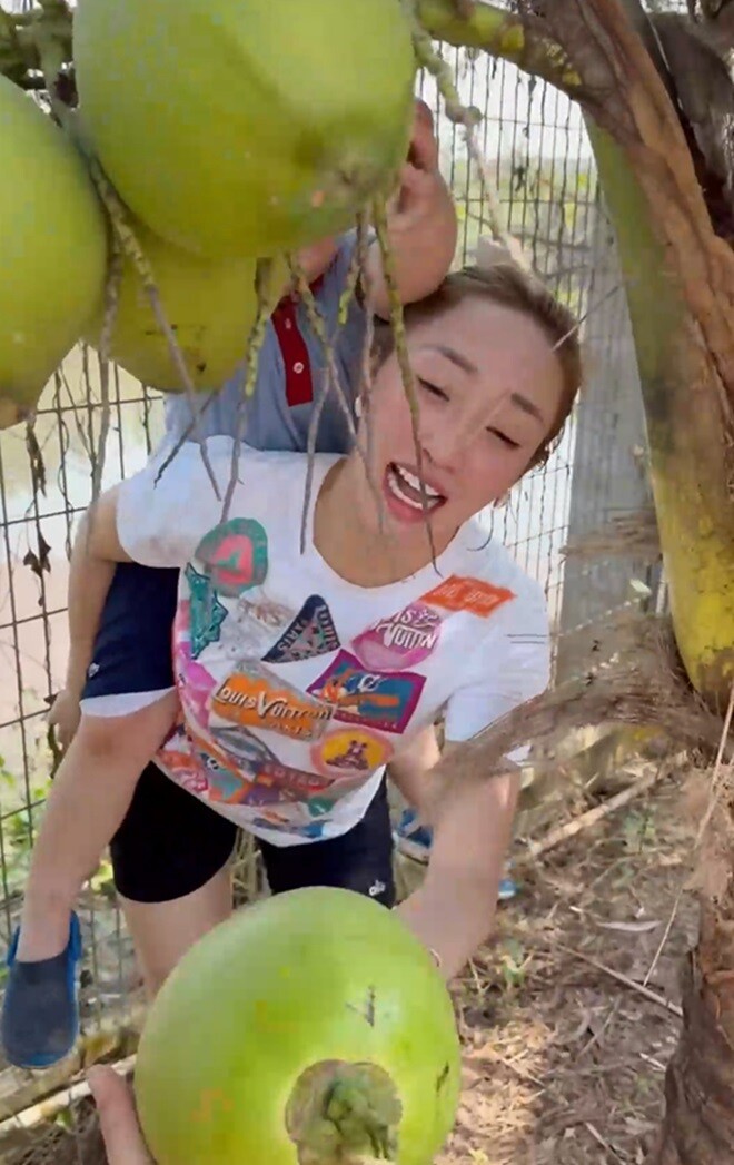 Bên cạnh đó, các loại cây ăn trái như mít và dừa cũng đang vào mùa trĩu quả. Việc tự tay hái và thưởng thức những món ăn chế biến từ nông sản "của nhà trồng được" mang lại cho gia đình nam diễn viên trải nghiệm thú vị và an tâm tuyệt đối về chất lượng.