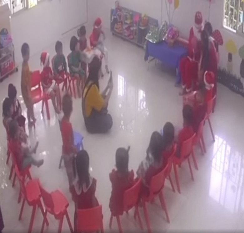 Check cam thì thấy các bạn lên nhận quà vui vẻ còn bà ý "sợ ông già Noel" nha nên cô giáo phải bế lên. Tự nhiên thấy thương quá trời. Mong em bé sẽ thích món quà mẹ chuẩn bị. Yêu Sol" - Thiên An kể lại.