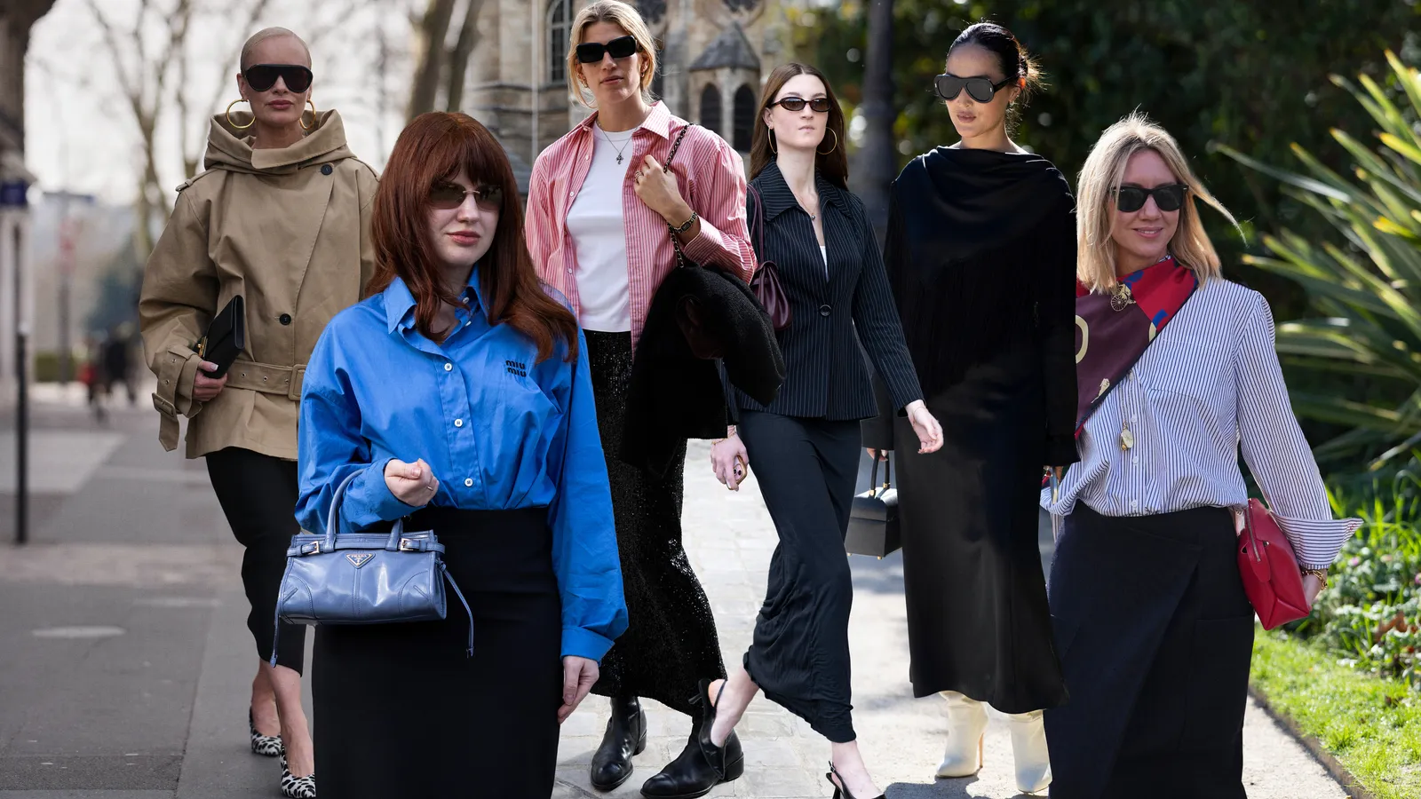 Từ xanh nhạt, xanh cobalt đến xanh xám, tất cả đều phối hợp hài hòa với màu đen. Một chiếc áo sơ mi xanh hoặc túi xách tông xanh sẽ giúp bộ trang phục trở nên nổi bật vừa phải, không quá cầu kỳ nhưng vẫn đủ thu hút. Đây là lựa chọn lý tưởng cho môi trường công sở cần sự tinh tế.