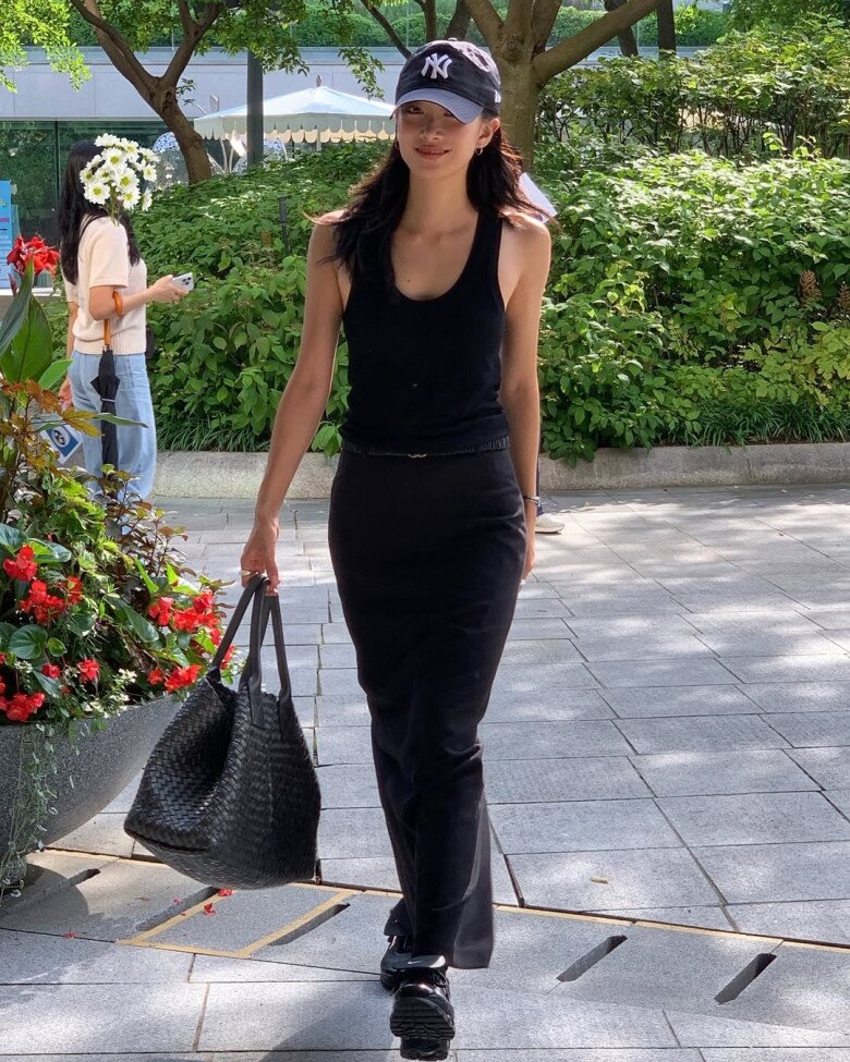 Để làm mới item tưởng chừng “an toàn”, hãy thử kết hợp với áo hai dây hoặc áo sát nách. Sự tương phản giữa phom váy dài kín đáo và phần trên gọn gàng, thoáng mát sẽ mang lại diện mạo hiện đại, phù hợp cho dạo phố hoặc những buổi gặp gỡ cuối tuần.