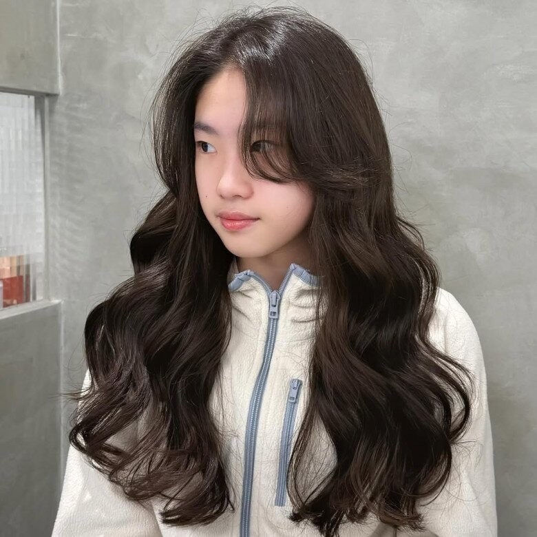 Điểm đáng chú ý là phần xoăn thường bắt đầu từ khoảng 2/3 chiều dài tóc thay vì uốn từ chân tóc. Cách xử lý này giúp mái tóc dài không bị “quá tải” độ phồng, đồng thời vẫn giữ được sự tự nhiên và cân đối. Nếu bạn sở hữu mái tóc dài và muốn thử kiểu xoăn này, đây là cách làm đáng tham khảo.